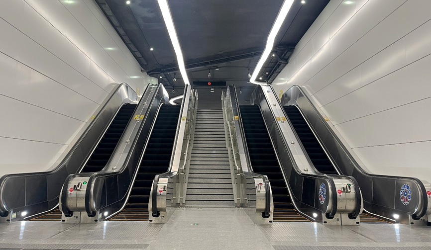 广日电梯深度契合广州“交通强市”建设战略,为广州地铁十三号线二期量身定制垂直交通解决方案,共提供了96台高性能电扶梯设备。该线路作为横贯广州中心城区的东西向交通大动脉,全长约33.5公里,设站23座,开通后将有效疏解五号线客运压力,预计日均客流量将达144万人次。